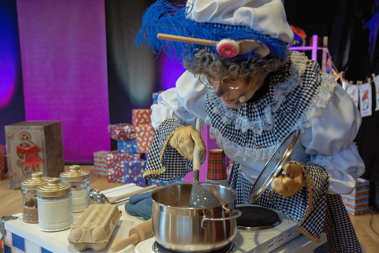 - De Hippe Pieten zingen, dansen en maken plezier met de kinderen en natuurlijk pakken ze de cadeautjes samen uit.